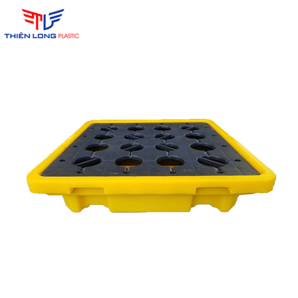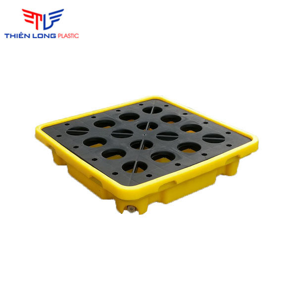 - Pallet nhựa chống tràn 1 phuy với thiết kế có rãnh thoát nước được làm từ 100% HDPE nguyên sinh (màu vàng) chịu được cường độ cao bằng công nghệ sản xuất ép phun. Tương thích với nhiều loại hóa chất, bao gồm cả axit và chất ăn mòn…