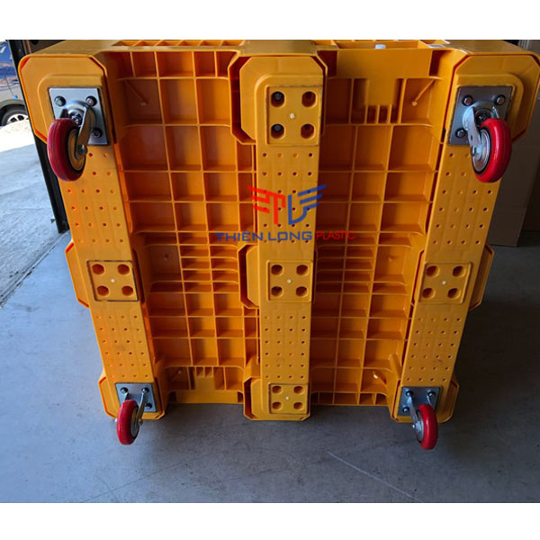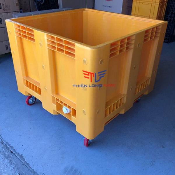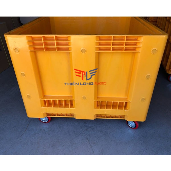 Là sản phẩm thùng nhựa đặc nhập khẩu có bánh xe cao su chắc chắn, bền giúp dễ dàng di chuyển hàng hóa.