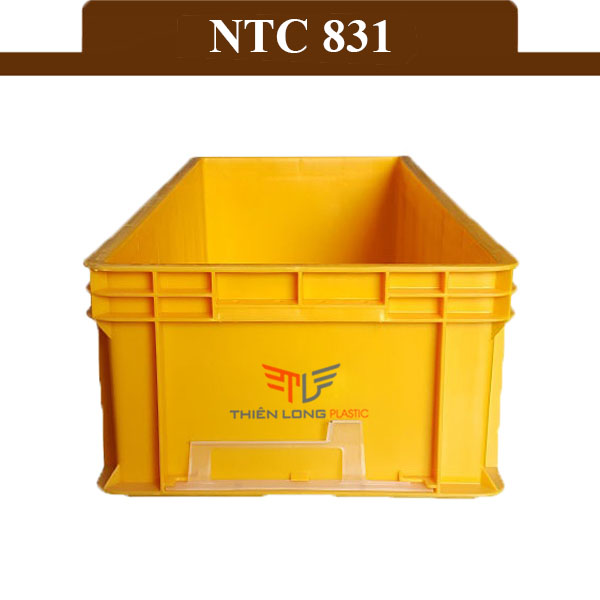 - Sản phẩm thùng nhựa đặc NTC 831 thiết kế có 2 tay cầm được tích hợp vào 2 đầu chiều rộng của thùng giúp bưng bê, di chuyển sản phẩm dễ dàng trong phân xưởng