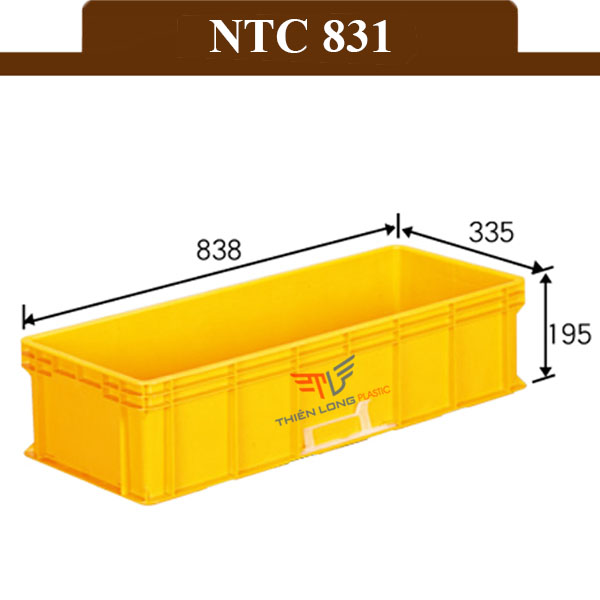- Sản phẩm thùng nhựa đặc NTC 831 có kích thước ngoài: 838 x 335 x 195 mm