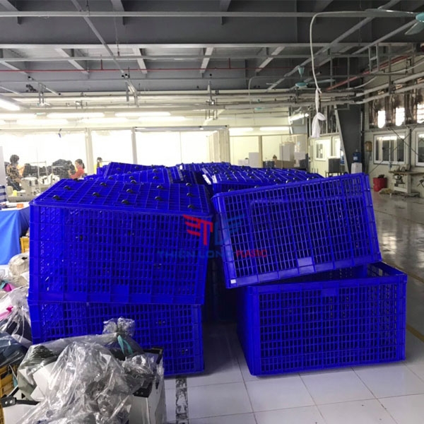 - Trong may mặc: Thùng nhựa rỗng HS015 được sử dụng rộng rãi trong các công ty may mặc dùng để đựng nguyên vật liệu, vải vóc, thành phẩm quần áo,….