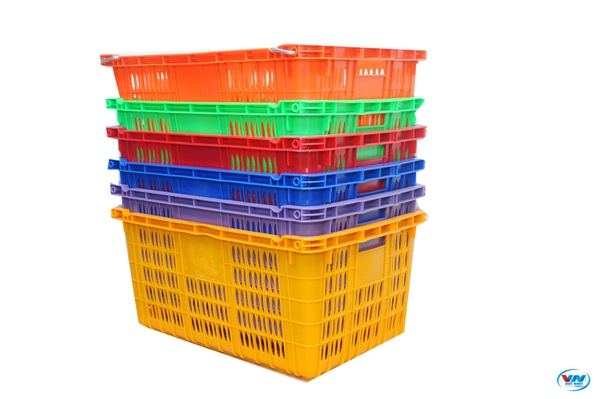 - Trong nông nghiệp: Sản phẩm thùng nhựa rỗng HS011 có các nan thưa, đáy thùng đặc được đục lỗ dùng đựng trái cây, rau, củ, quả…. sau khi thu hoạch giúp thông thoáng, không hư hỏng thực phẩm, rau củ