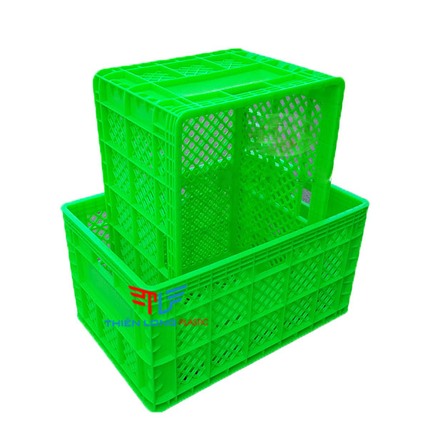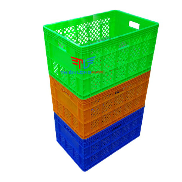 - Trong nông nghiệp: Sản phẩm thùng nhựa rỗng HS013 có các nan thưa, đáy thùng đặc được đục lỗ dùng đựng trái cây, rau, củ, quả…. sau khi thu hoạch giúp thông thoáng, không hư hỏng thực phẩm, rau củ